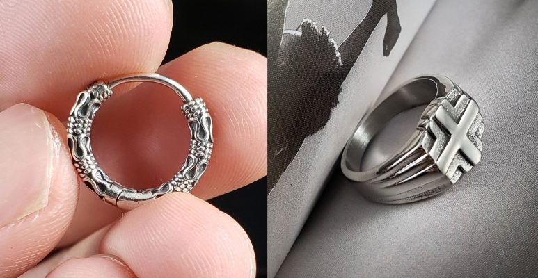 Trang sức bạc có thể chế tác những chi tiết nhỏ với đường nét tinh xảo. Phụ kiện Stainless steel thường chỉ chế tác chi tiết lớn, ít đường nét nhỏ.