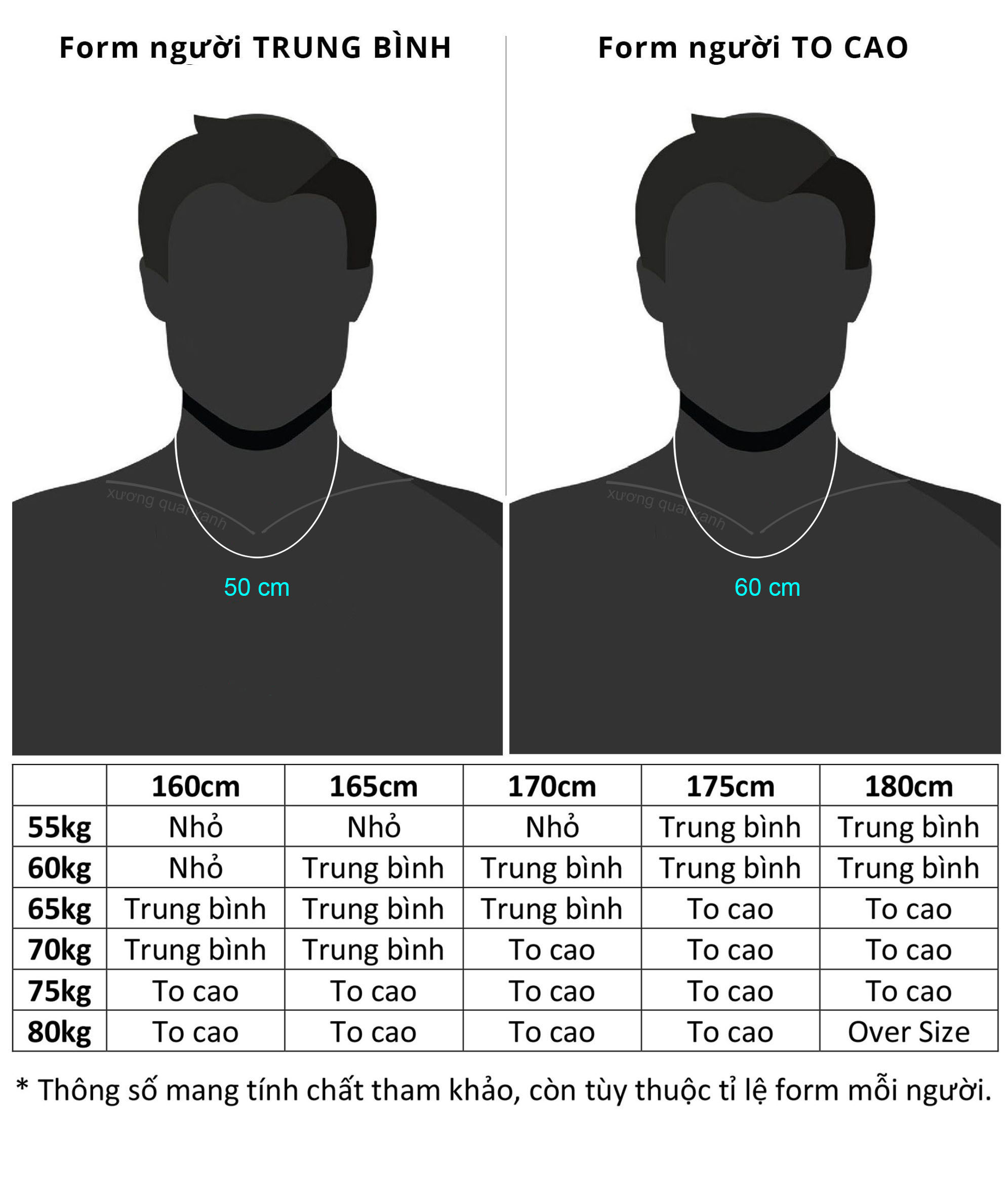 - 50cm: Phù hợp cho form người trung bình và nhỏ.