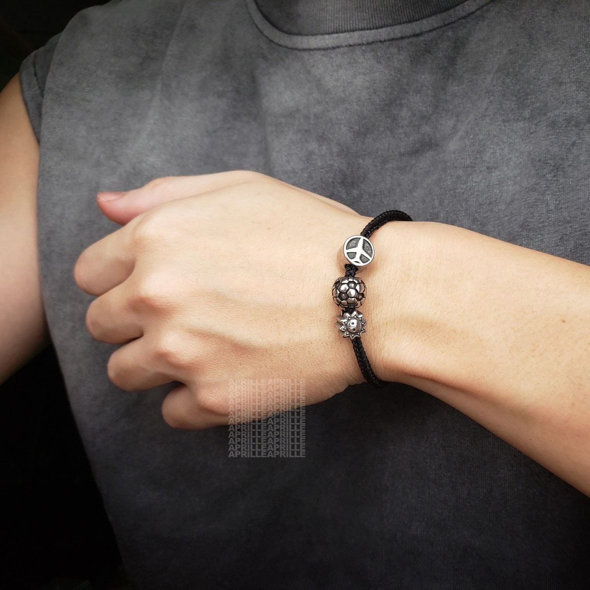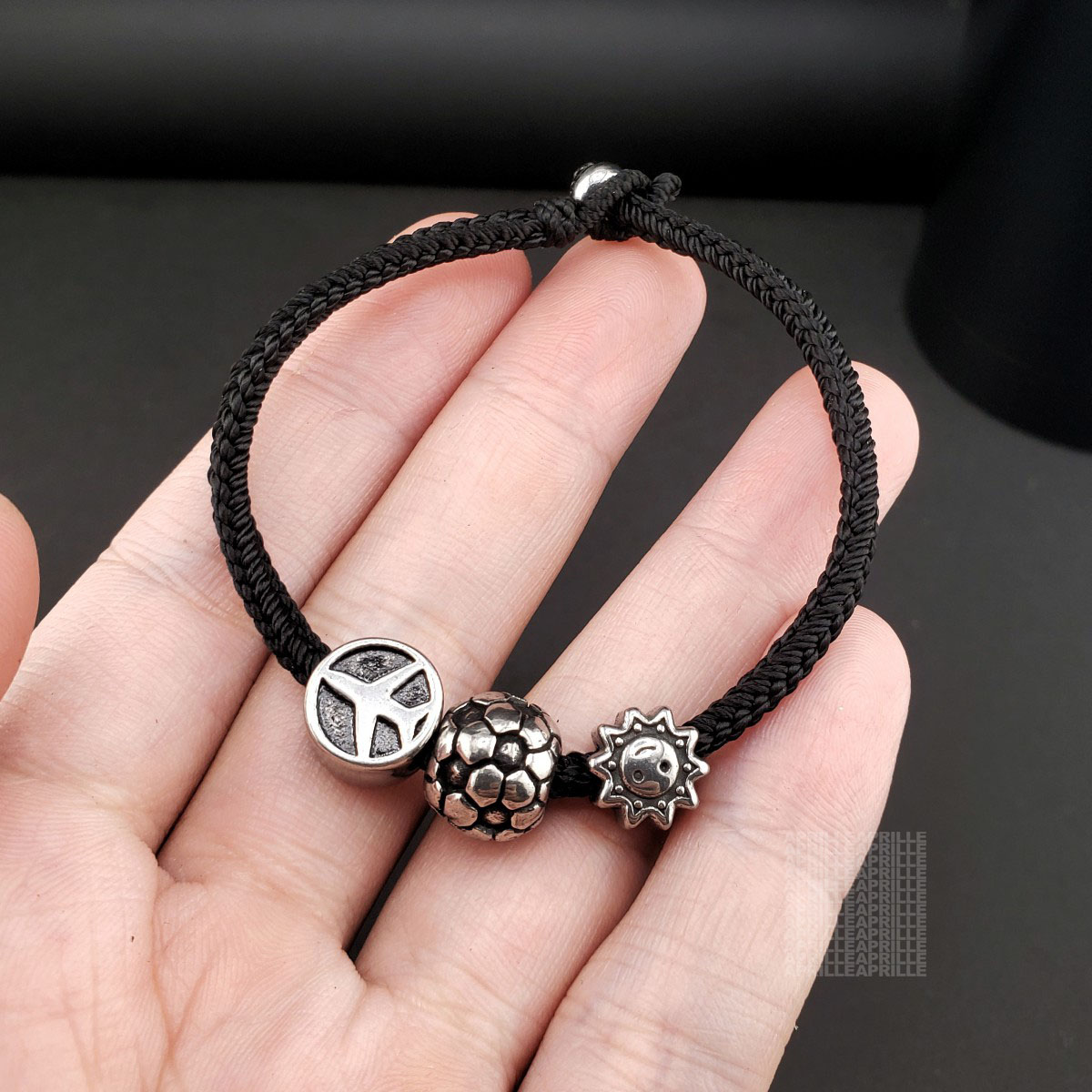 - Sản phẩm hoàn chỉnh gồm 1 vòng trơn sợi tô châu màu đen và 05 mặt charm.