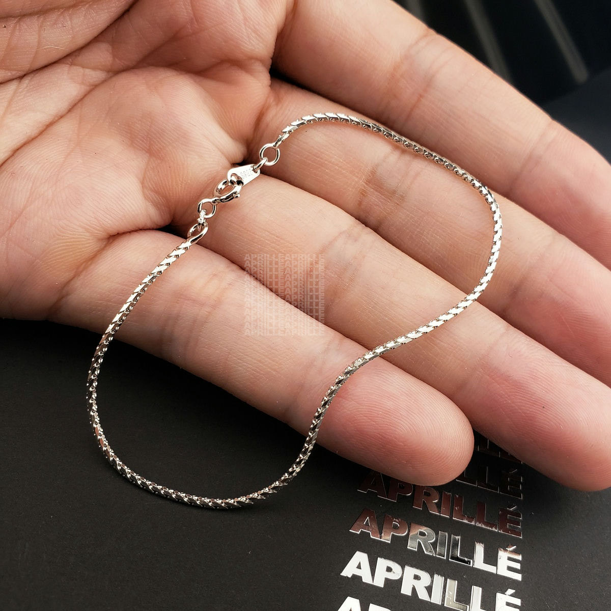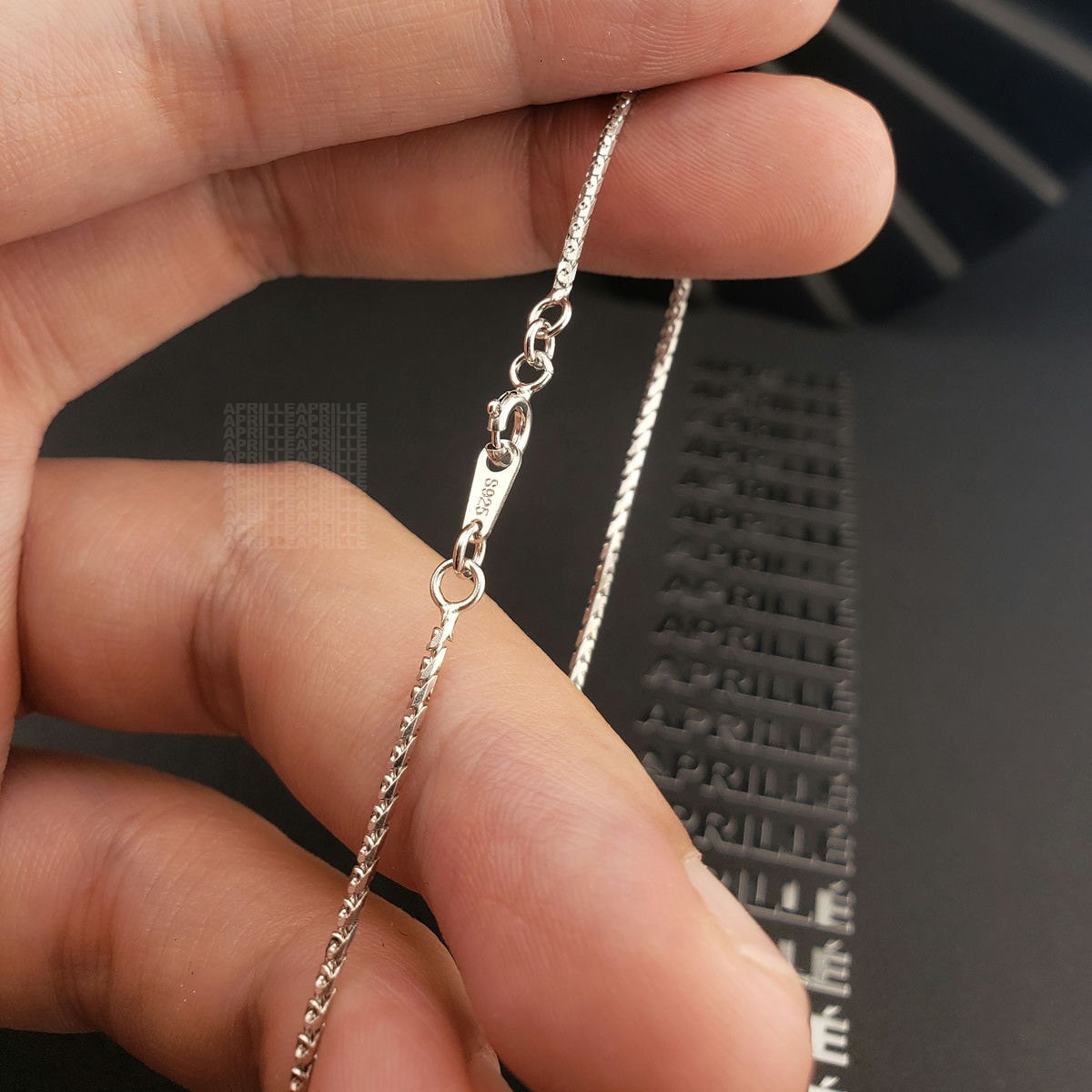• Lưu ý phân biệt với các loại bạc ta S925 có màu trắng đục và kém bóng hơn, dễ bị ngả vàng, xỉn đen hơn vì đây là loại bạc trần nên xảy ra oxi hóa chậm trong điều kiện thường. APRILLÉ không kinh doanh loại bạc ta này.