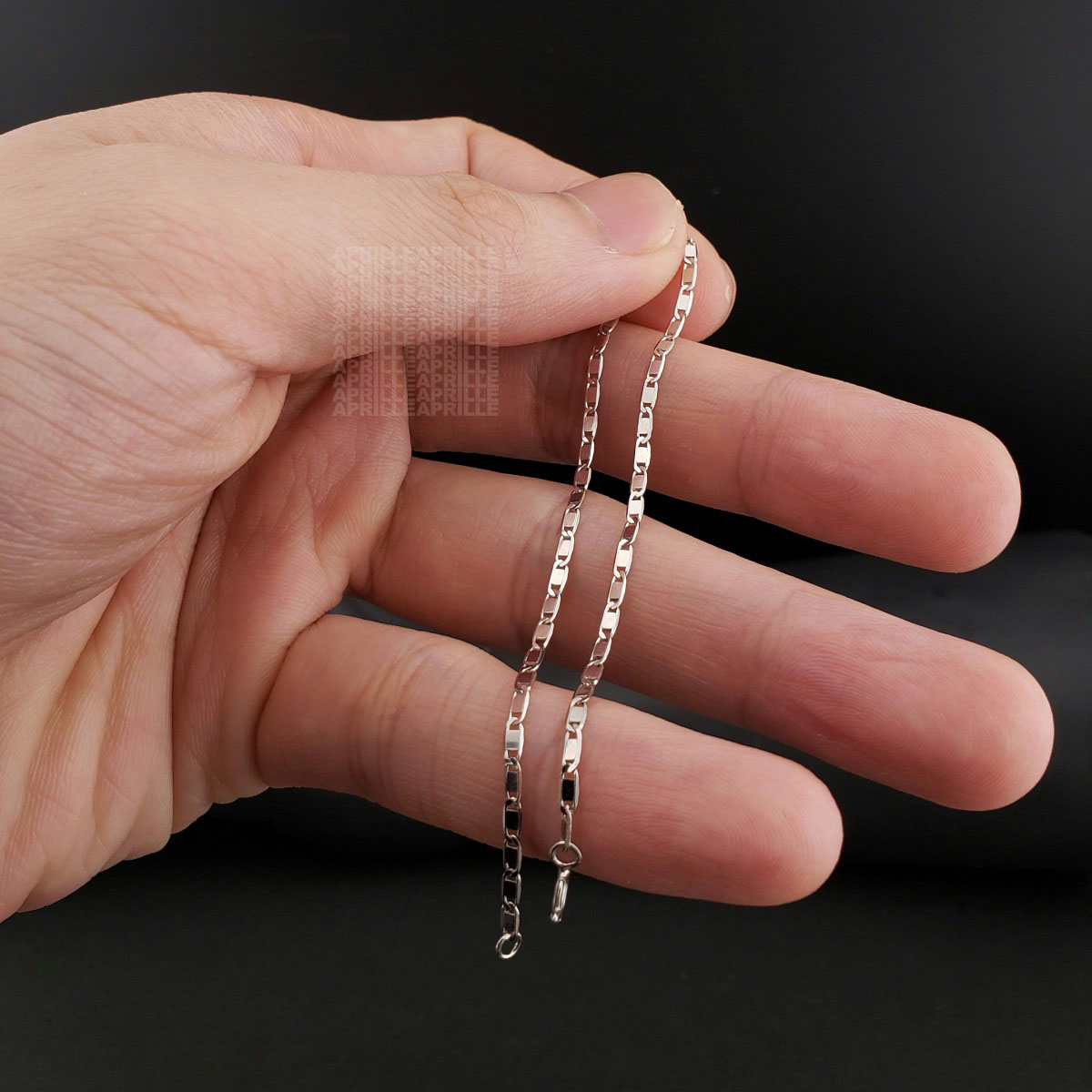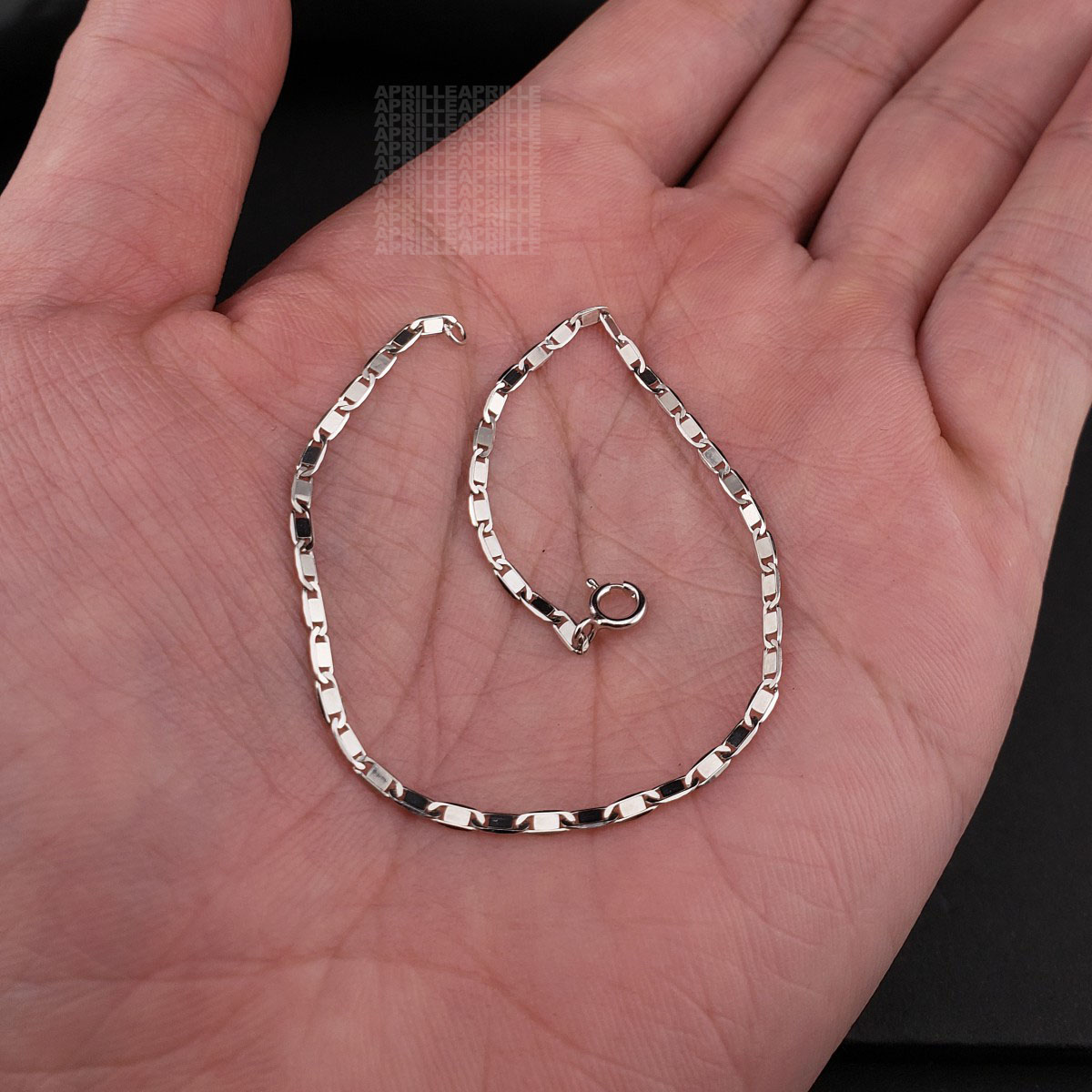 • Lưu ý phân biệt với các loại bạc ta S925 có màu trắng đục và kém bóng hơn, dễ bị ngả vàng, xỉn đen hơn vì đây là loại bạc trần nên xảy ra oxi hóa chậm trong điều kiện thường. APRILLÉ không kinh doanh loại bạc ta này.