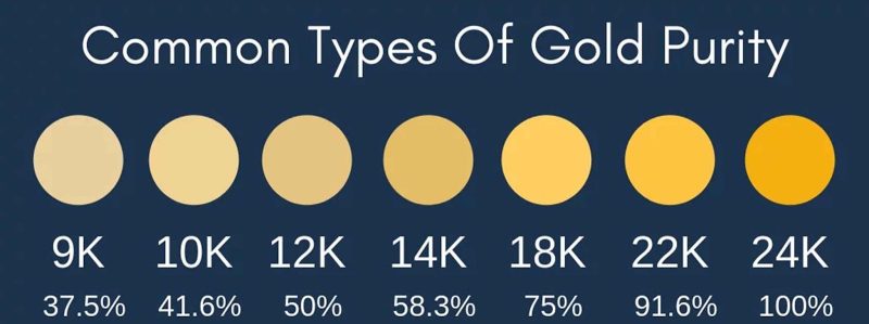 - Tùy tỉ lệ giữa vàng nguyên chất và hội khi pha trộn đồng nhất với nhau, chia thành các loại sau, phổ biến nhất là 2 loại 18k và 14k.